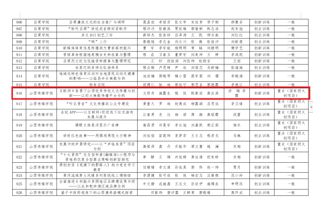 下一条:表演学院申报大创项目获批2021年度国家级重点大学生创新创业训练项目立项